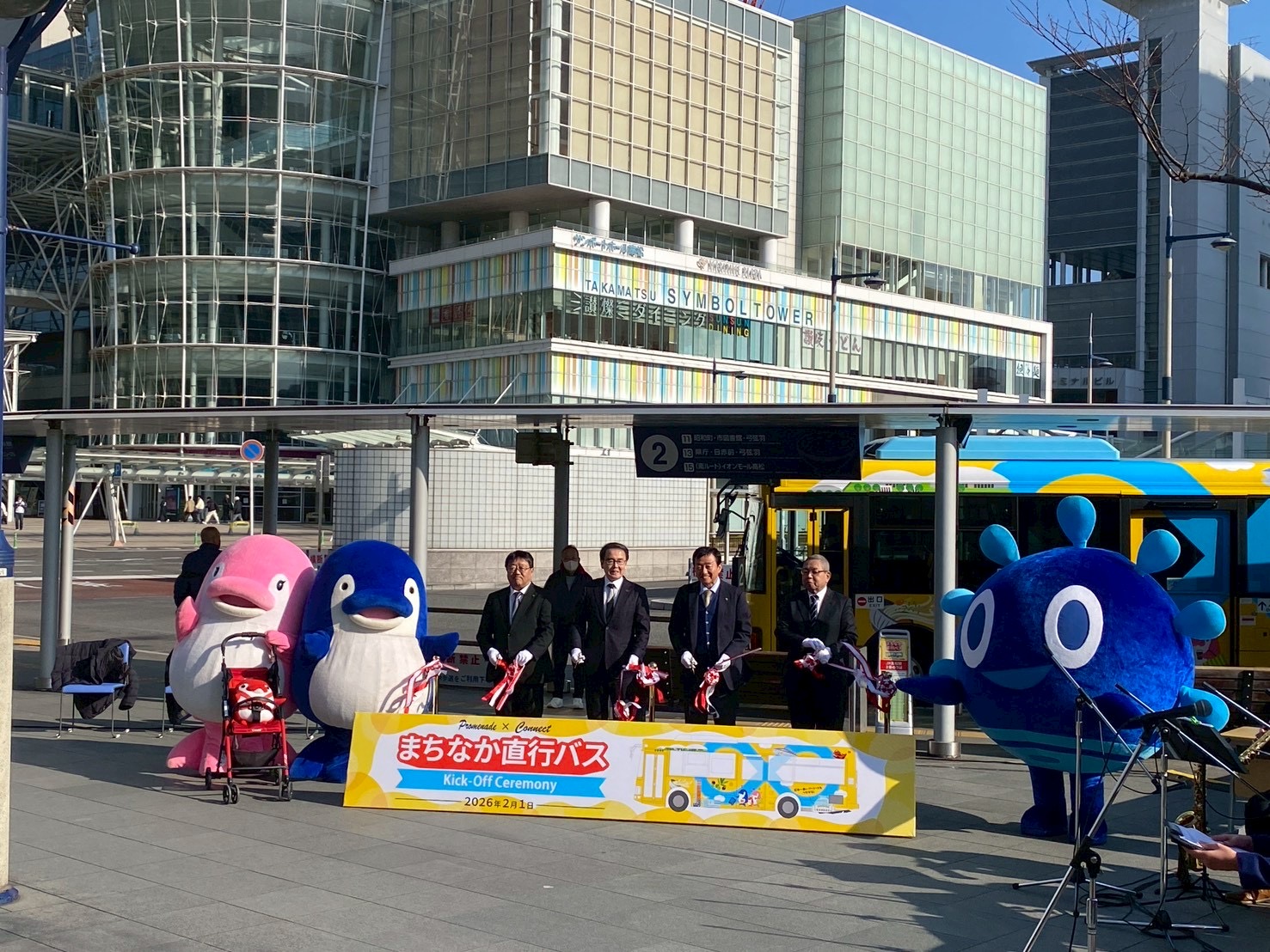 この事業は、サンポートエリアのにぎわいを街中全体に行き渡らせるため、サンポート高松・高松駅と高松中央商店街との間を高頻度でバスを直行させる社会実験です。多くの市民の皆様、観光客等の皆様に、御利用いただけたらと存じております。