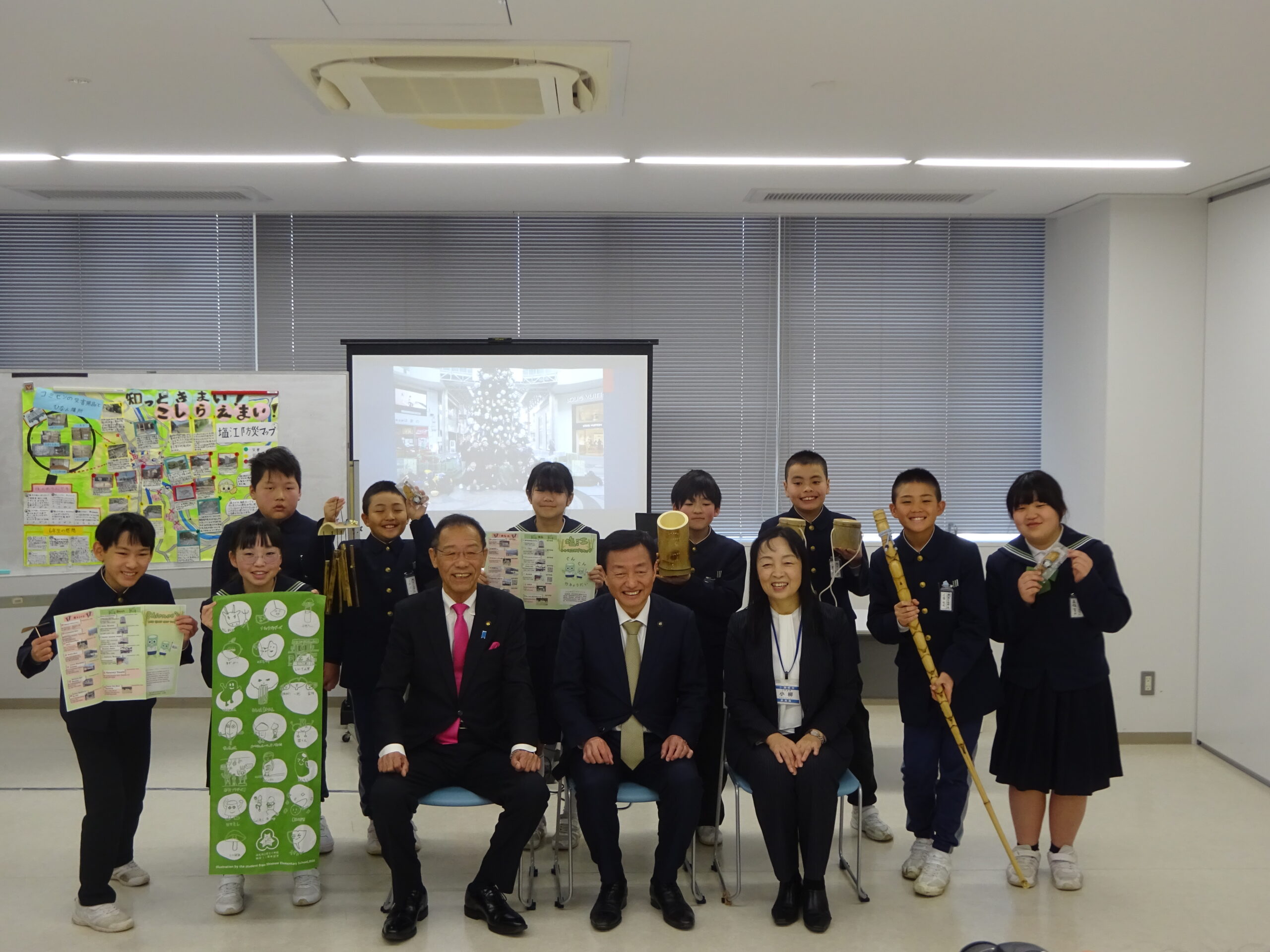 本日は、午前中に塩江小学校の小学生から地域活性化に向けた活動報告を受けると共に、午後は亀阜小学校で行われた生成AI特別授業を視察してまいりました。塩江小学校の活動報告は、5・6年生が取り組んできた「塩江防災マップ」と今後の地域活性化に向けた取組についてでした。