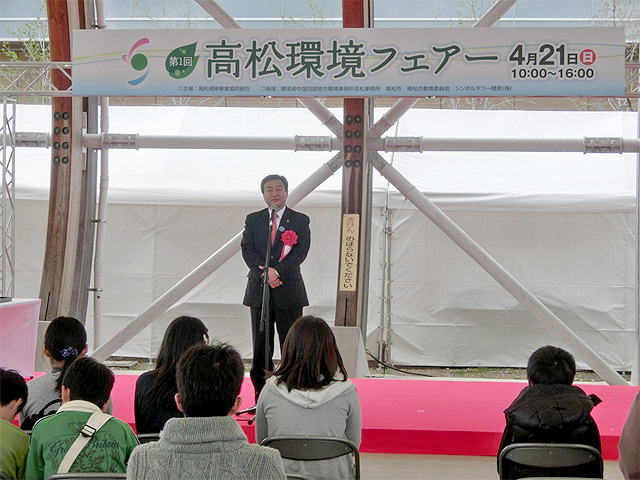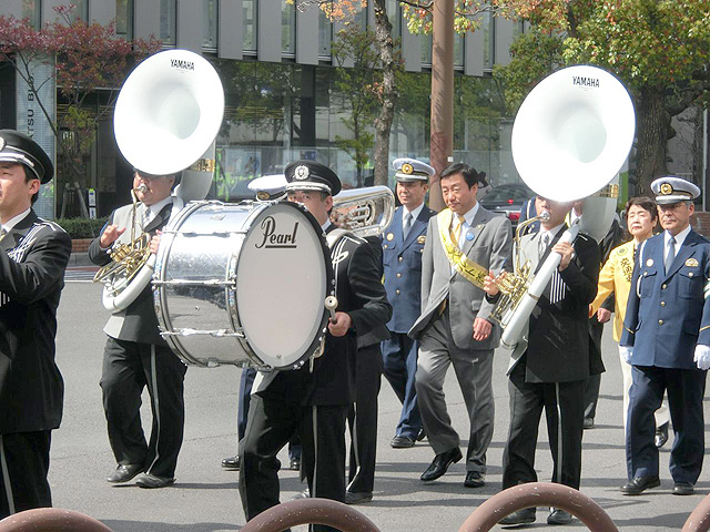 高松市交通安全都市推進協議会会長としてあいさつをした後、関係者の皆様と交通安全啓発パレードに参加しました。