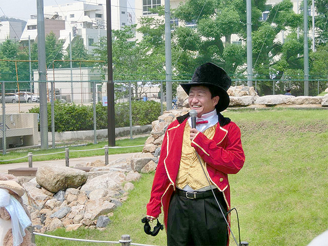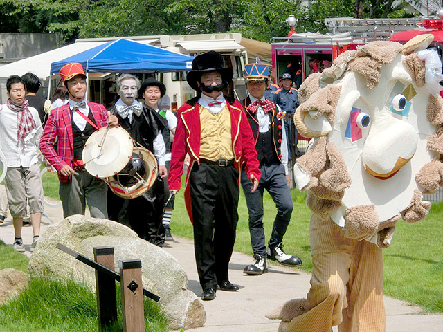 本日午前、市役所本庁舎北側の四番丁小学校跡地に公共施設を整備した四番丁スクエアにおいて、「まちづくり学校文化祭」を開催しました。 この文化祭は、昨年8月にオープンした四番丁スクエアを多くの市民の皆様に知ってもらうおうと「子ども」をテーマに、そして「サーカス」をキーワードに、今回初めて開催したものです。オープニングでは、私もサーカス一座の座長に扮して、パレードをした後、お集まりの皆様にあいさつをしました。その他、綱渡りやジャグリングのショーや子どもを対象とした体験型のプログラムも多数行われ、子ども達を中心に多くの皆様に楽しんでいただくことができました。四番丁スクエアには、コミュニティ協議会連合会と連合自治会連絡協議会の事務局ならびに市民活動団体が利用する市民活動センターが入所しており、この場所が、本市が進める地域コミュニティや市民活動団体の協働によるまちづくりの拠点となることを願っております。